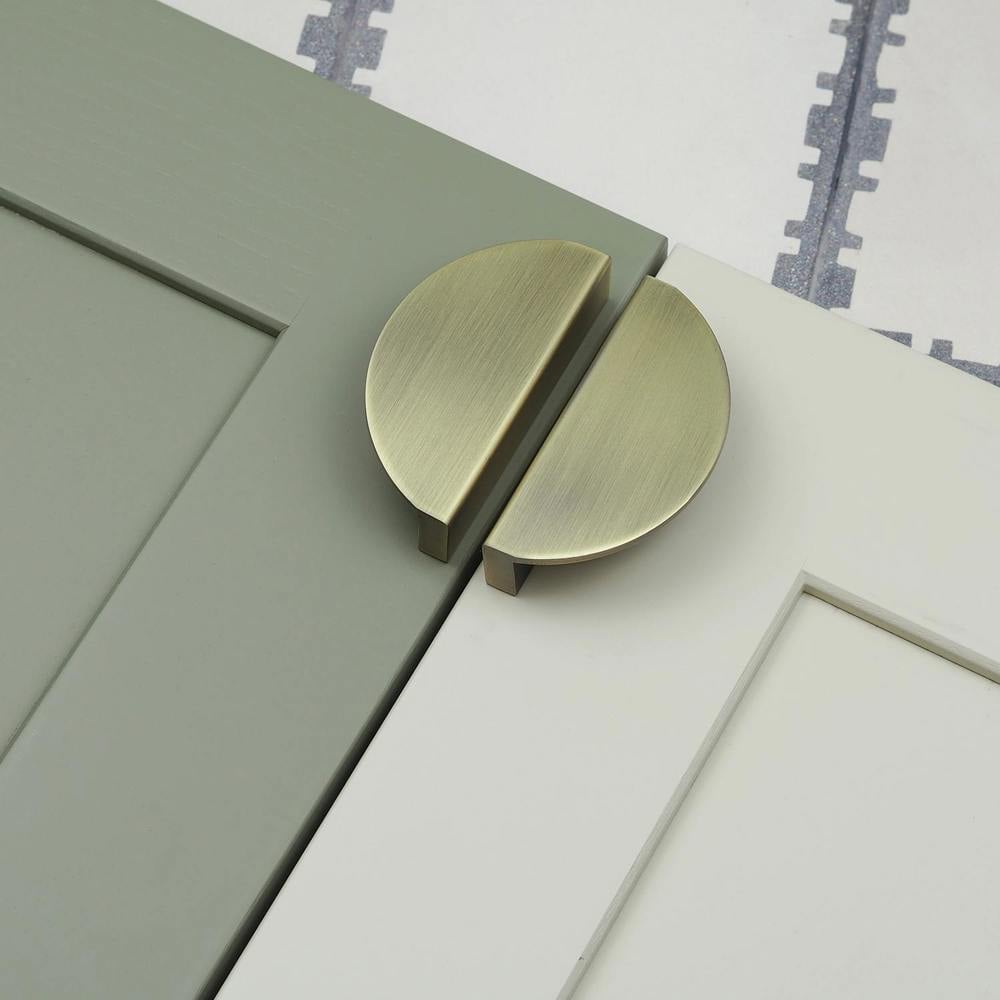 Add a refined focal point to your cabinetry with the Handle and Home Brushed Brass Half Moon Cupboard Handle with 64mm Hole Centres. Designed with a smooth semi circular profile, this elegant pull can be fitted individually or paired across two adjoining doors to create a striking full circle effect.