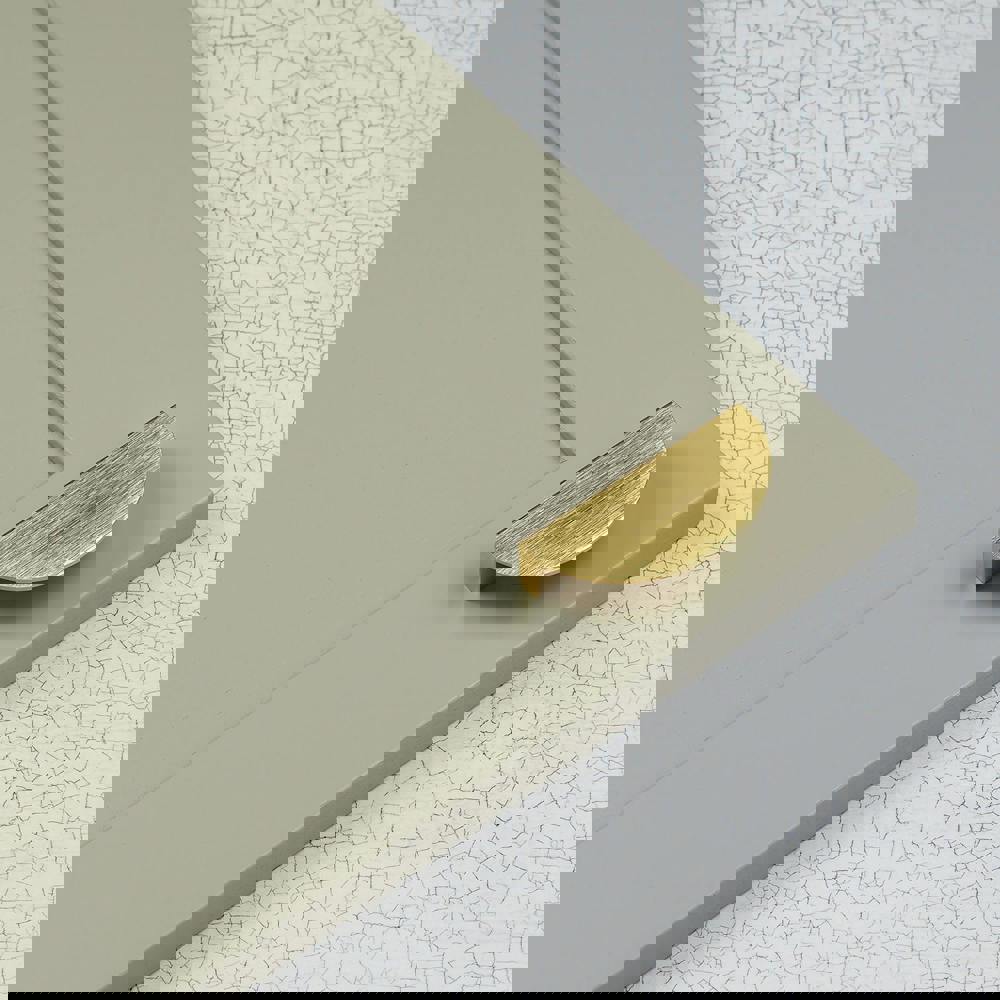 A 64mm Brushed Brass Half Moon Handle Make a statement on kitchen cabinets with these brushed brass half moon handles. With a smooth, semicircular design these handles look great styled alone, or used edge to edge as a pair where two doors meet. Finished in a soft, golden brass tone with visible brushstrokes, these pulls are sure to pop sat against a variety of kitchen cabinet colours. Add a bold, premium accent to storage units and kitchen units alike with these rear fix handles.