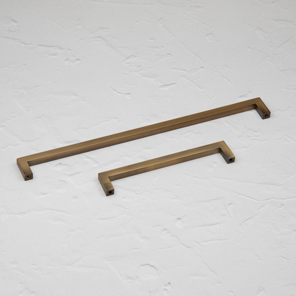 These handles are made from solid zinc and with an antique, brushed brass finish.