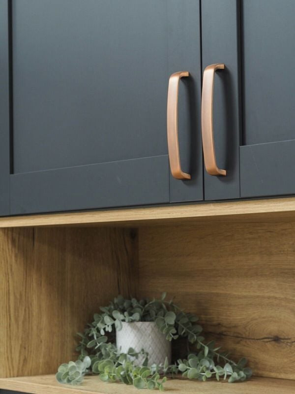 Choose from a family of antique copper handles and knobs. A modern bow shaped handle, rounded D handle, or matching pull knob, all in a soft, brushed copper finish. These pulls offers a soft, versatile way to bring copper hardware into your home. Ideal for kitchen cabinets and drawers as well as home furniture, these options will look great used alone or mixed together. Give your kitchen or fitted furniture the final touch with these versatile handles. The handles are available in 128mm & 160mm fixing hole centres, and a coordinating 35mm rounded knob. This set is perfect for updating the look & feel of kitchen cabinets & drawers or completing home furniture projects alike.