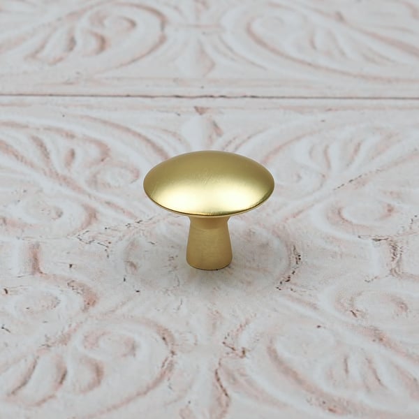 Upgrade your space with this elegant handle and knob family, finished in a luxurious soft gold brass with brushed detail. The bow handle features a gracefully curved bar and wide grip for a modern yet practical pull with broad, arched ends. Paired with a classic circular knob resting on a narrow stem with a gentle rounded face for a comfortable hold. Combining timeless design with modern sophisitacation, this shaker style set is prefect for kitchens, bathrooms, or furniture pieces, adding a subtle, refined touch to the home. For an effortless refurb, use these individually or paired for a warm charm and elegant finish.