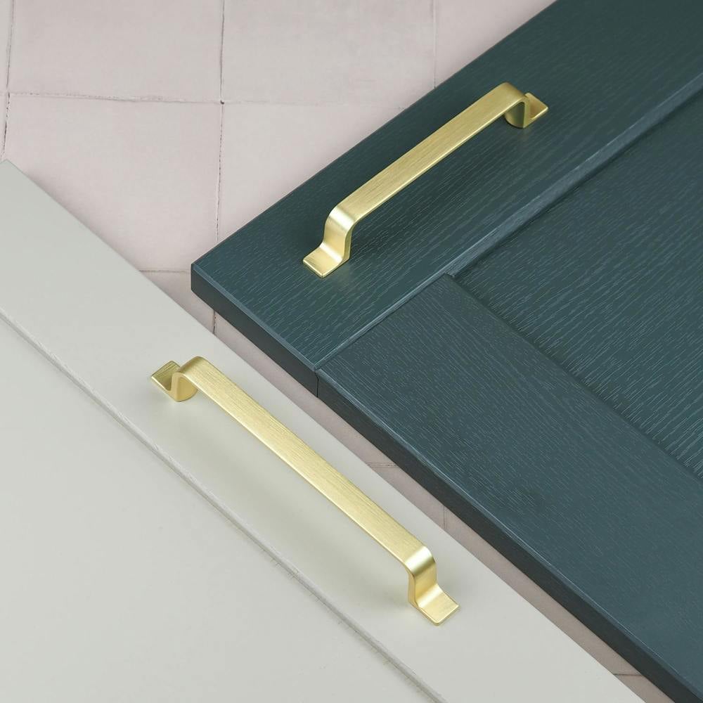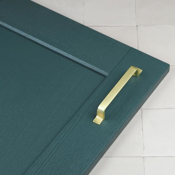 Add a soft, gold brass finish to your bedroom cupboards or cabinet doors with a clean, modern shape. The design features a straight central bar leading to gently curved ends that flatten to seamlessly meet the door or drawer front. Available in 2 lengths, these handles make the perfect final touch to kitchen cupboards, drawers and wardrobes. With a brushed brass finish, you’ll see a subtle mix of lighter gold tones across the handle. The finish provides an effortless way to bring brass hardware elements to your home DIY project.