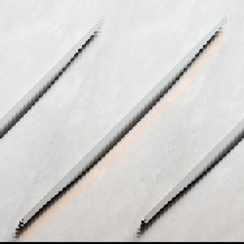 A set of trim handles in two different lengths. These profile handles are finished in brushed nickel and our screw fixed in place onto the top of the kitchen cabinet using two holes on the back of the handle. They do not require the door to be routed / bayonet fixed. We also offer the same handles in a polished chrome finish.