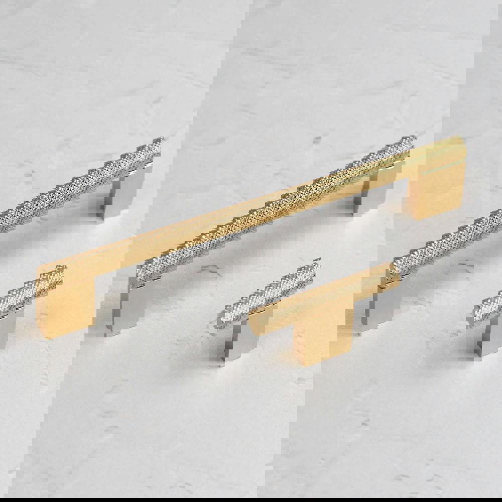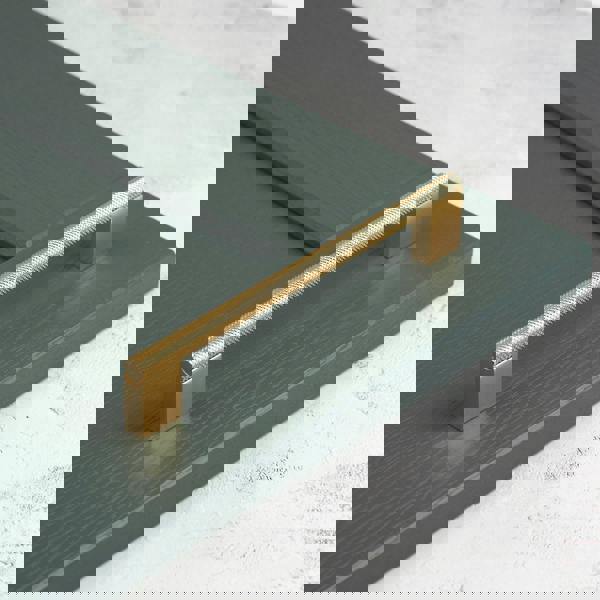 A 160mm handle in a contemporary Gold Brass finish ideally suited for kitchen cabinetry as well as bedroom & bathroom furniture or media units.