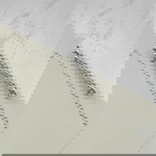 A contemporary classic in both style & finish, this knurled nickel hardware range offers two lengths of bar pull, and one cylindrical button pull knob. Brushed nickel hardware is a versatile metallic choice, and the detailed diamond knurling across this range, gives grip and interest. With a nod to industrial design, the knurling on these handles catches both the light and the eye. The two sizes of bar pull have the classic bar shape, with 12mm bar diameter, feature a striking delicately knurled centre, smooth ends & feet with soft, visible brush strokes. With a dainty diameter of 17mm, the round knob is small yet detailed with fine knurling texture all around and smooth face. These pull knobs offer one hole fixing making them ideal for easy design updates to furniture as well as kitchen doors & drawers. Use a selection of these pulls, or choose just one, to complete a kitchen DIY project, or swap on to tired furniture to give it a new, modern aesthetic.