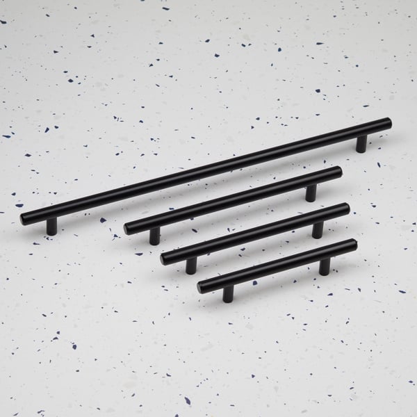 Classic design coupled with a solid steel construction make this black hardware collection both timeless and durable. Choose from hole centres of 96mm, 128mm, 160mm or 320mm in this simple, clean & modern bar handle design. With four sizes to choose from and a versatile finish this hardware collection is ideal for mixing and matching in different spaces around the home. The matt black finish adds modern, minimal finish to the traditional bar shape. An easy way to update kitchen cupboards & drawers, choose the size you need or mix & match.