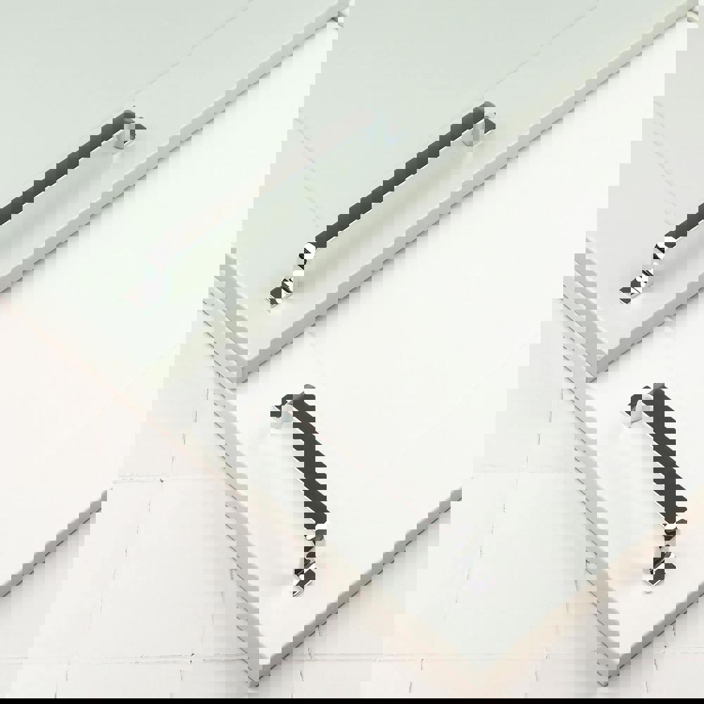 Add a versatile, polished chrome finish to your bedroom cupboards or cabinet doors with this clean, modern shape. The design features a straight central bar leading to gently curved ends that flatten to seamlessly meet the door or drawer front. Available in 2 lengths, these handles make the perfect final touch to kitchen cupboards, drawers and wardrobes. With a classic, neutral, polished chrome finish, this handle will sit well with most interior colour schemes.