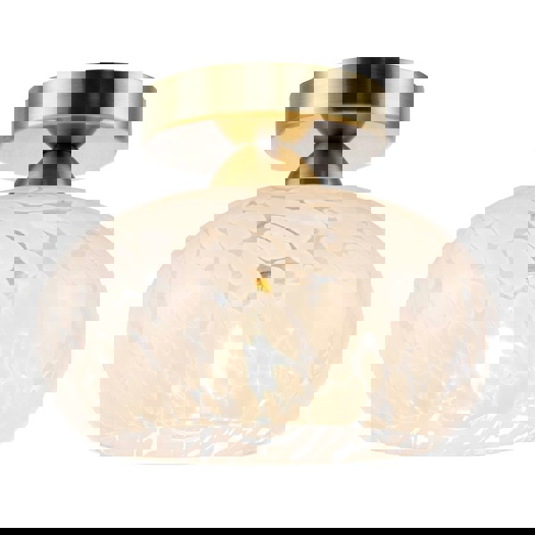 Contemporary and elegant metal semi flush ceiling lighting fixture in an antique brass plated finish.