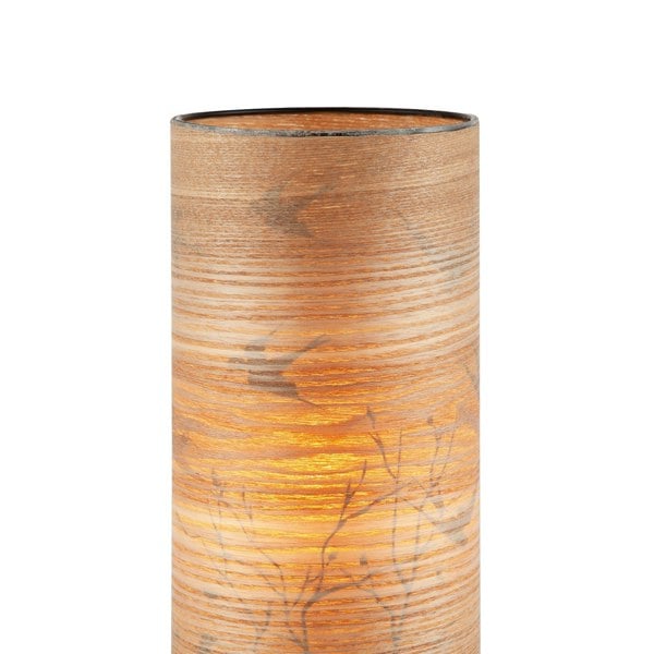 Contemporary and elegant light brown bamboo wood-effect conical table lamp.