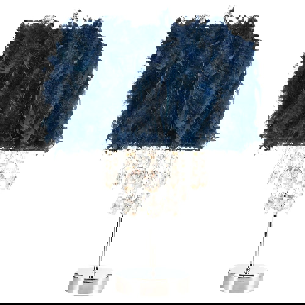 Features unique and eye-catching 100% real natural midnight blue feather shade.