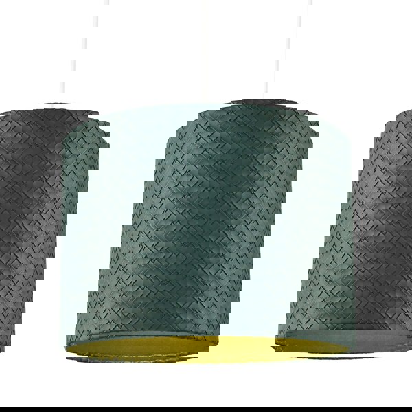 Unique designer dark forest green circular drum lamp shade with inter-laced diamond design.