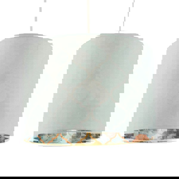 Features inner satin shimmer fabric lining with Moroccan scale patten print in teal, duck egg, blue and gold which creates a stunning effect when light shines through.