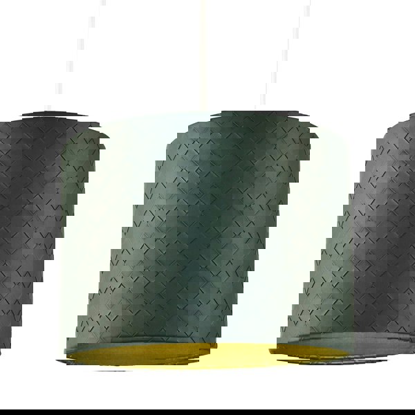 Unique designer dark forest green circular drum lamp shade with inter-woven diamond design.