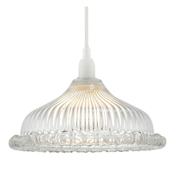 Modern and elegant easy-fit clear transparent glass pendant ceiling light shade with line ribbed etched body.