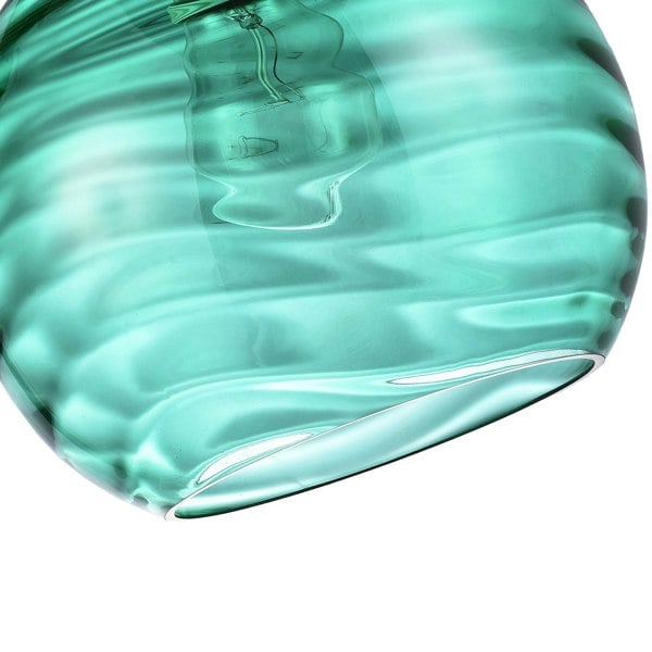 Contemporary and elegant easy-fit emerald green circular moulded glass pendant lamp shade with ribbed body.