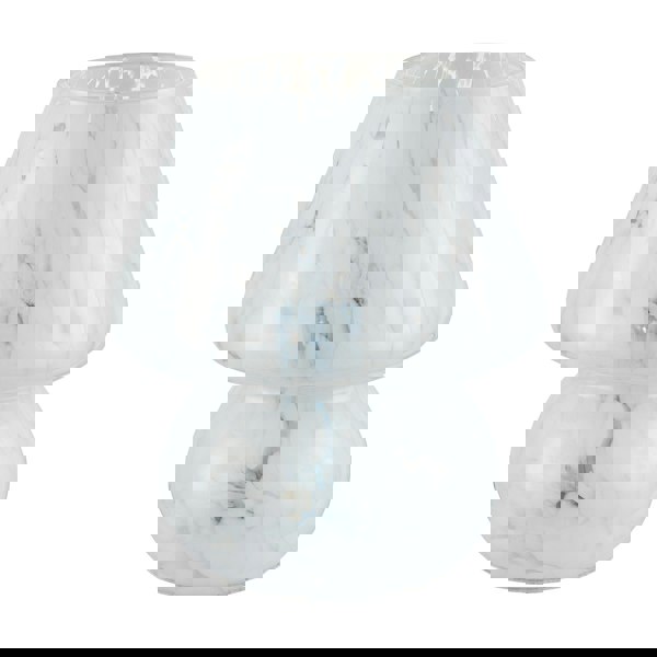 Modern and unique mini-mushroom shaped glass table lamp with circular bottom base.