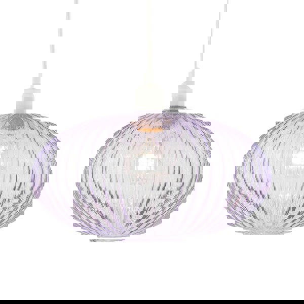 Contemporary and sleek easy-fit soft lilac purple moulded glass pendant lamp shade with line ribbed etched body.