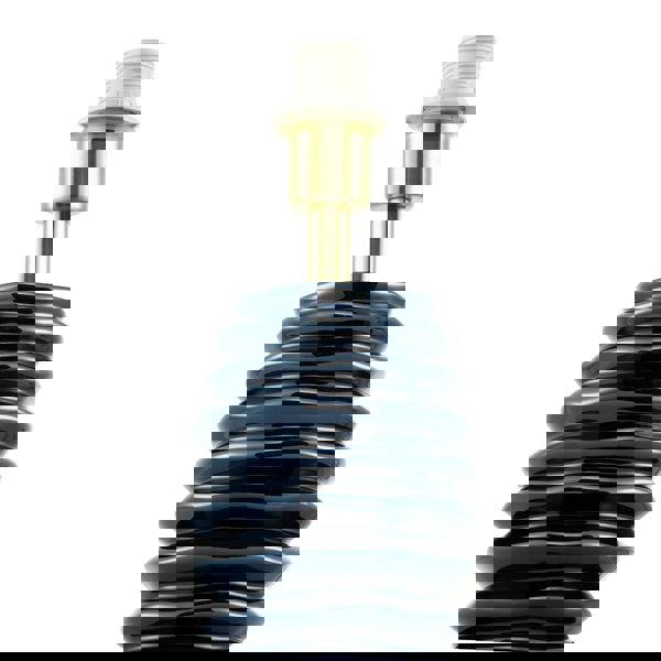 Contemporary elegant metallic blue ceramic gloss table lamp base with deep etched rippled grooves.