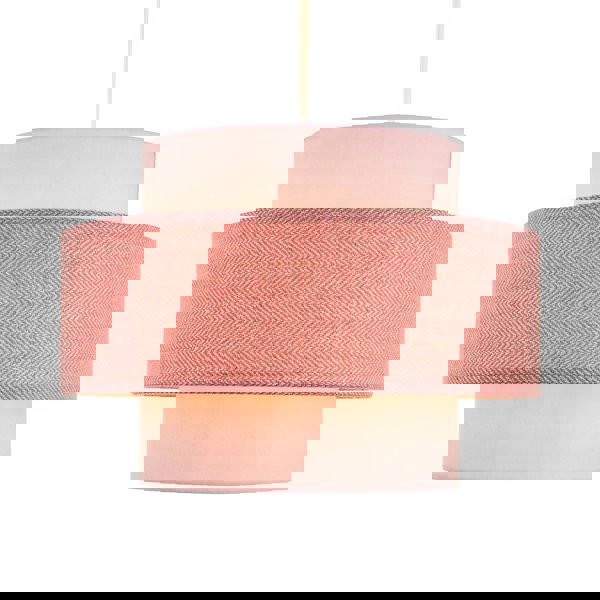 Features eye-catching middle ring of pink herringbone linen fabric with upper and lower matching soft pale pink cotton fabric rings.