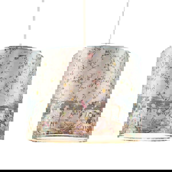 Beautiful and eye-catching floral circular drum lamp shade.