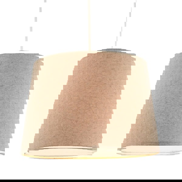 Contemporary and sleek drum shape lamp shade featuring oatmeal natural textured linen fabric material with inner off-white cotton lining creating a luxurious look and feel.