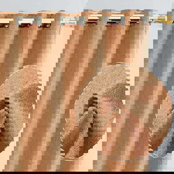 Made from dusty orange textured linen fabric with 100% blackout backing, these curtains help keep your space cool in summer and warm in winter, improving comfort and helping to reduce energy bills.