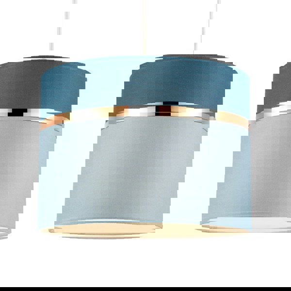 Made of two-tone sky and cobalt blue cotton fabric with shiny copper decorative ring.