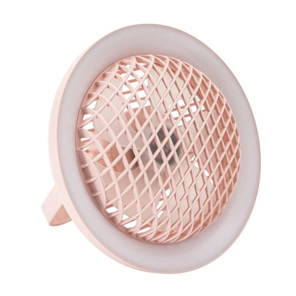 This stylish soft pink desk fan features a built-in LED light, making it perfect for your home, office, or bedside table.