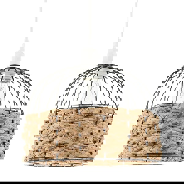 The matte black bird cage style metal frame is half-wrapped with natural brown paper rope creating a vintage and unique look.