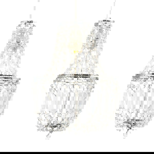 Features small clear acrylic beads and lower rectangular long pendalogues which create a stunning effect when light shines through.