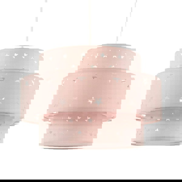 High quality soft pink cotton material with intricate laser cut small and large stars making a stunning effect against the wall when light shines through.
