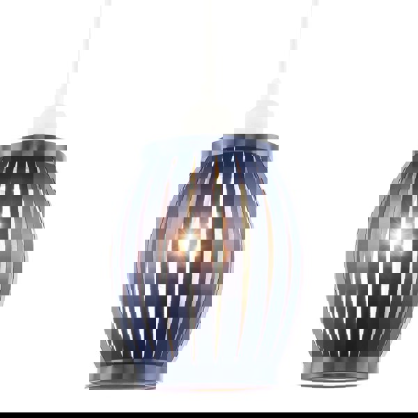 Contemporary and retro shaped easy-fit pendant lamp shade with grill style design creating a unique light output effect.