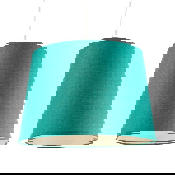 Made of high quality vivid teal cotton fabric with white gloss metal frame and inner off-white cotton lining giving this shade a very luxurious look and feel.