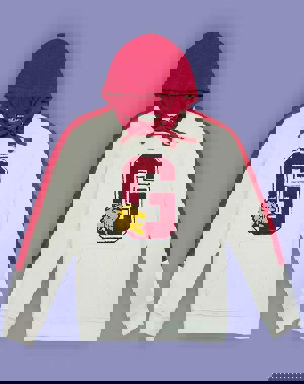 A great wardrobe staple, this premium style hoodie comes in beige and red with classic sporty stripes along each sleeve