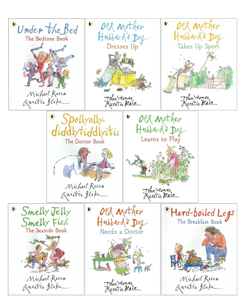 Each book is illustrated by Quentin Blake, with the set described as “seriously silly”. With a mix of Rosen’s playful titles and Yeoman’s Old Mother Hubbard's Dog adventures, this is a compact library of humorous reads.