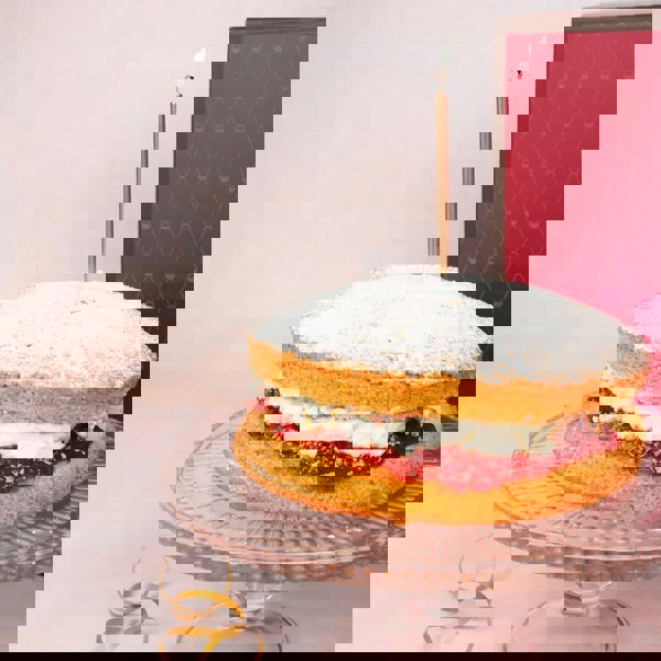 A bottle of fantastic DOC Extra Dry Prosecco and a handmade Victoria Sponge cake filled with strawberry jam and buttercream.