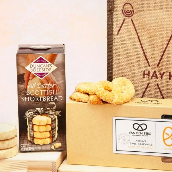 A biscuit for everyone including all butter Scottish shortbread, zesty lemon and ginger biscuits, authentic amaretto biscuits, sweet sugary cracknel biscuits in a traditional pretzel shape and some moreish apple pie cookies.