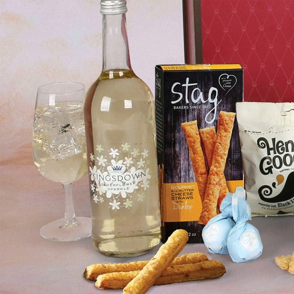 Spoil the whole family with this delectable sharing hamper! With a bottle of red wine for the grown-ups and sparkling elderflower for the kids.