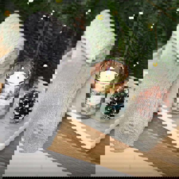 The candle is made with Heart & Home’s signature soy wax blend and is rich in festive scent, combining the evergreen aroma of Christmas fir trees with sweet winter spices. Alongside it, the knitted socks add a soft, snug finish that makes this set a thoughtful choice for seasonal gifting.