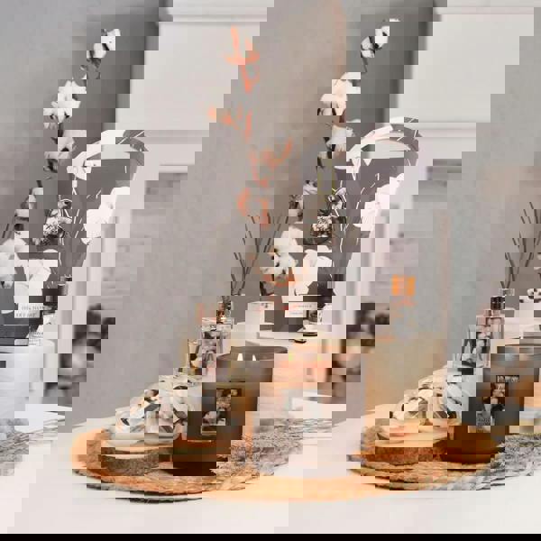 Cotton Blossom is a clean, uplifting blend, balancing florals with soft cotton blossom, layered with white musk and amber. Ideal for refreshing everyday living areas, it provides up to 12 hours of fragrance time, making it well suited to relaxed evenings at home or when you want a subtle, welcoming atmosphere.