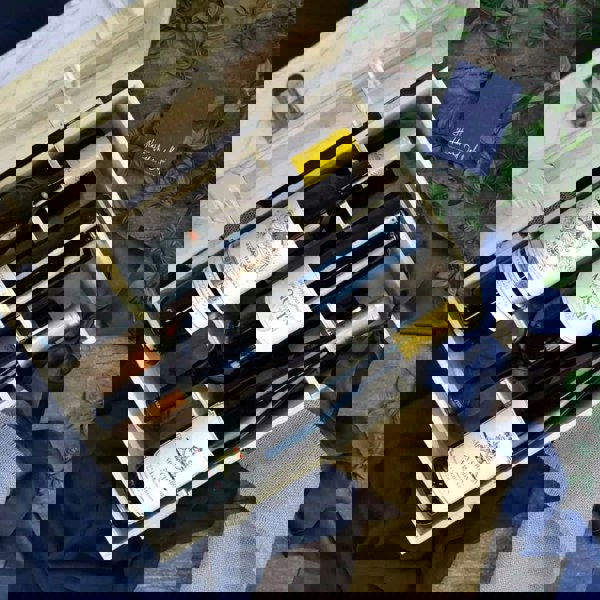 Presented in a decorated wooden wine chest with the signature Heather and Bale finish. A keepsake to be reused time and time again.