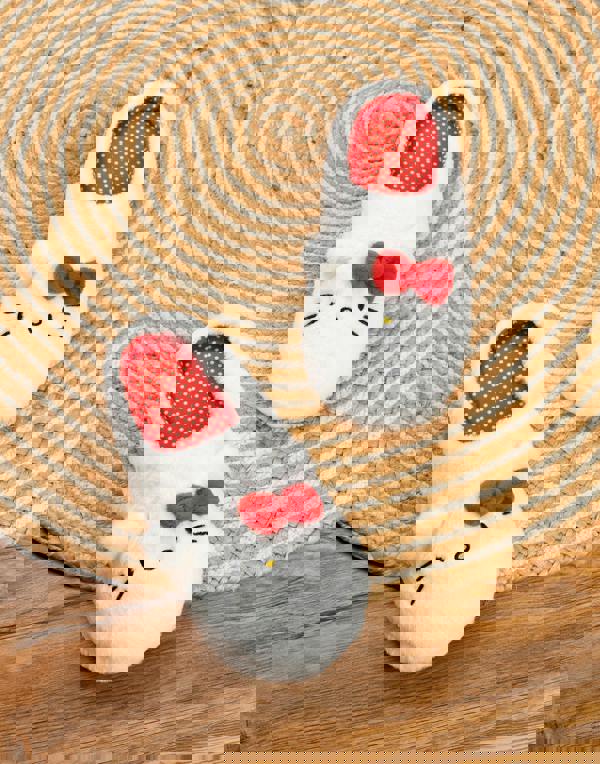 These unique slippers showcase a delightful cartoon character face design featuring Hello Kitty, complete with 3D ears and a stylish red bow