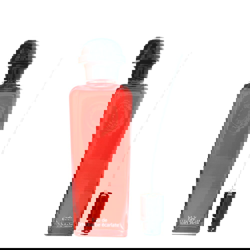 Hermès Eau De Rhubarbe Écarlate Eau de Cologne is a vibrant and refreshing fragrance that captures the essence of energy and elegance. It opens with the crisp, zesty freshness of rhubarb, followed by the fruity, floral blend of red berries and lantana at its heart. The fragrance settles into a soft, clean base of white musk, creating a light yet lasting scent. Perfect for daily wear, this offers a delicate balance of freshness and sophistication.