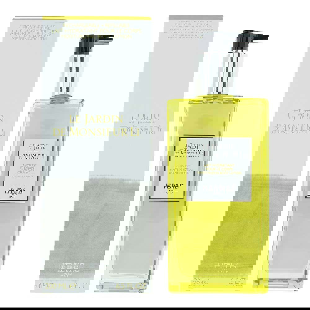 Hermès Le Jardin De Monsieur Li Moisturizing Body Lotion envelops the skin in a fresh, serene fragrance inspired by a Chinese garden after the rain
