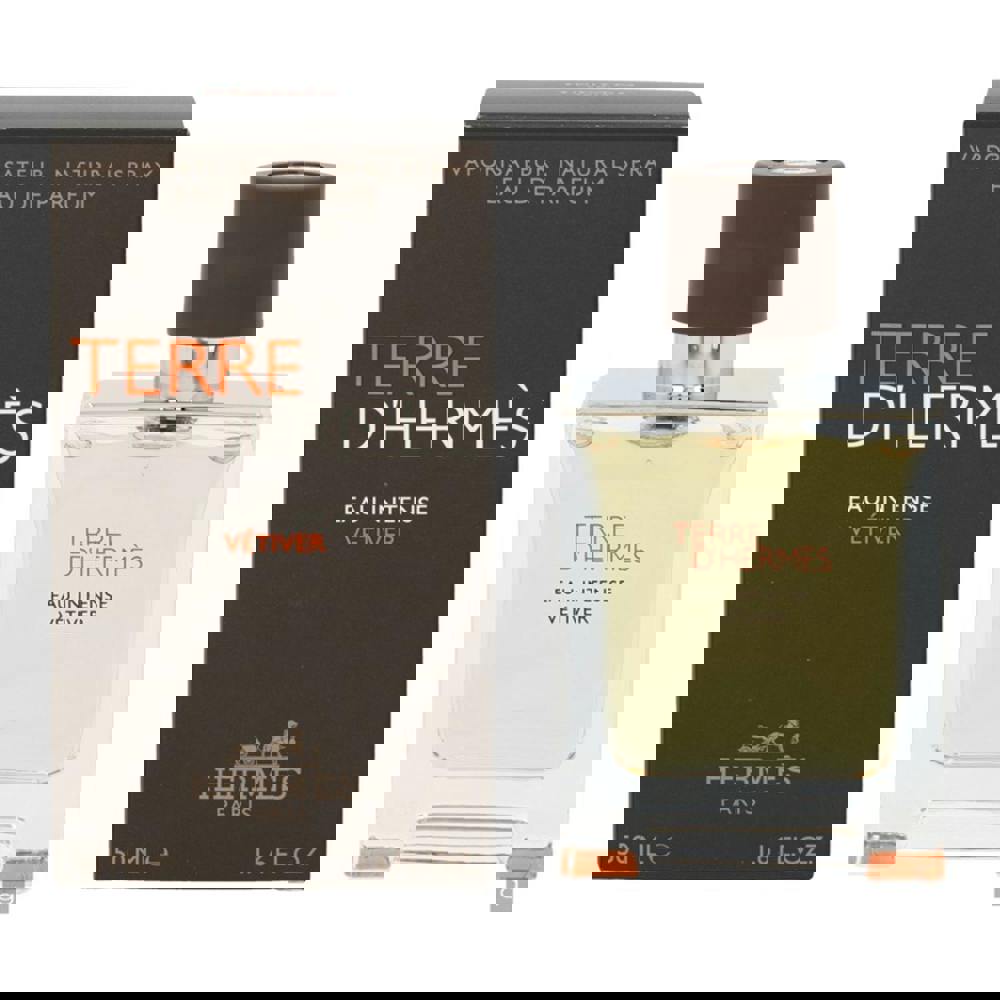 Earthy and invigorating, Hermès Terre d’Hermès Eau Intense Vétiver Eau de Parfum brings a brighter, greener intensity to the signature Terre d’Hermès style. This eau de parfum opens with a crisp citrus accord of bergamot, grapefruit and lemon, setting a clean, luminous tone from the first spray.