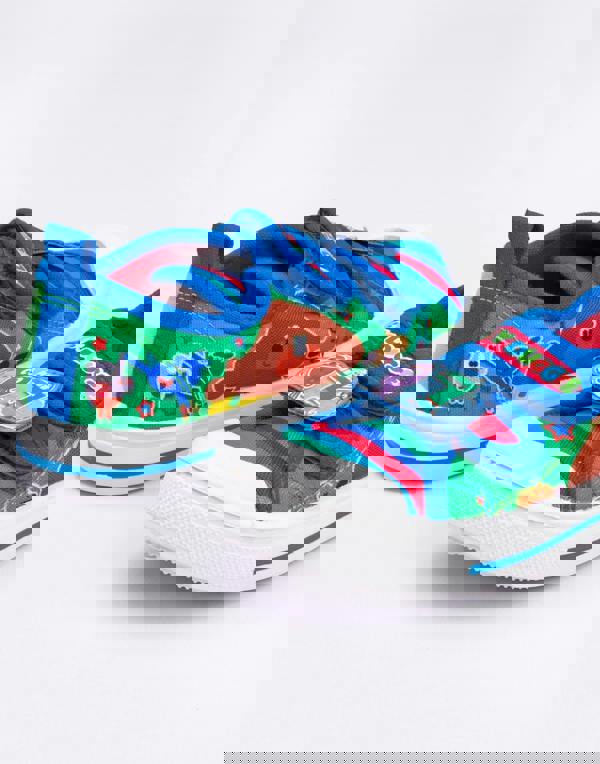Made from a mixture of textiles, the boys footwear comes in a green and blue design with a white sole and multicoloured striped tongue