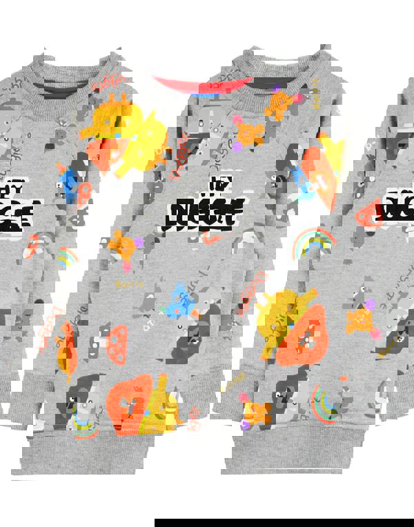 The kid's sweatshirt comes in grey with the "Hey Duggee" logo featured across the front and has long sleeves and a standard crew neck, perfect for cooler weather and relaxing while watching the Hey Duggee show