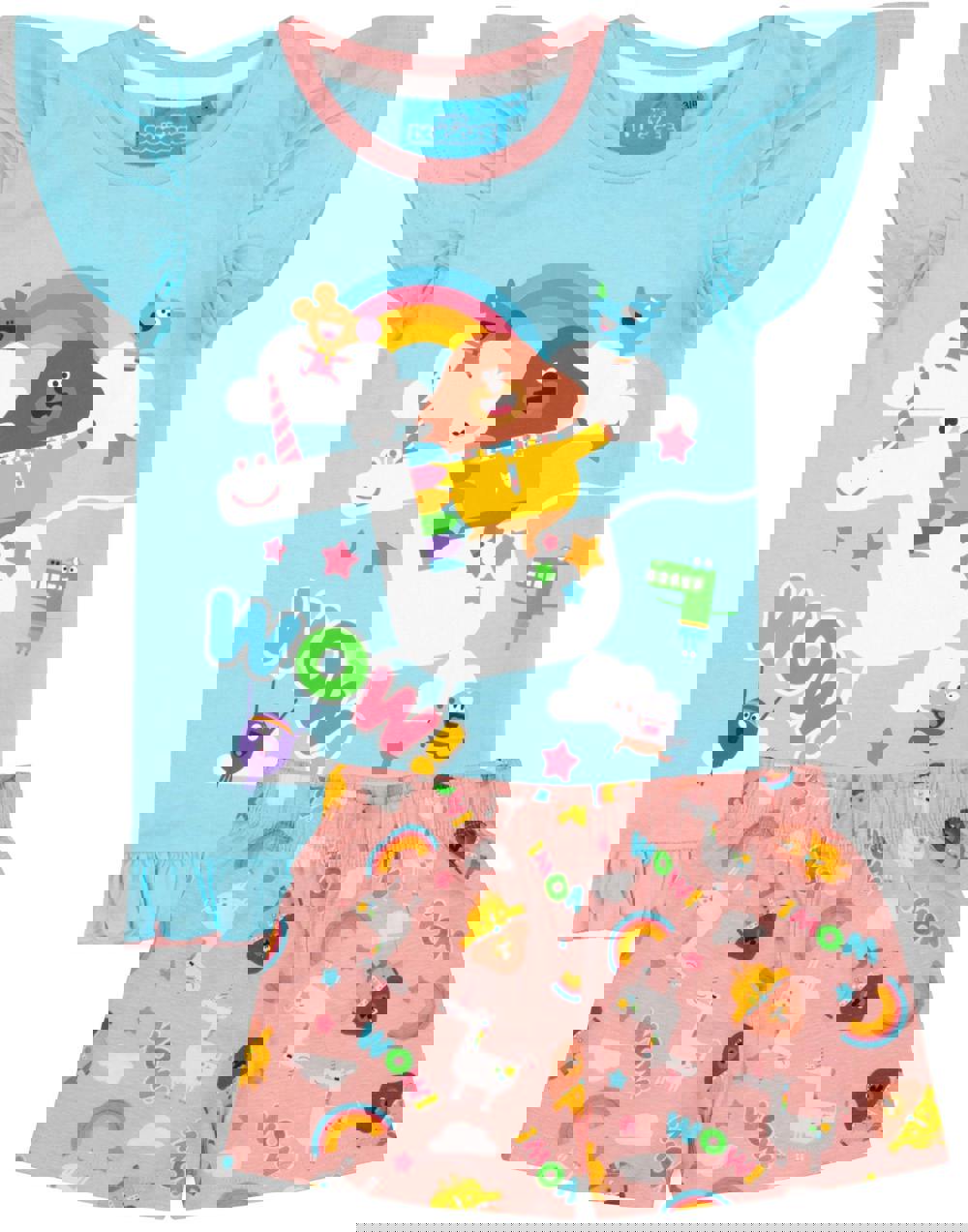Paired perfectly with Hey Duggee pink shorts or long length trousers that feature an all over print showcasing the friendly dog, stars and a rainbow colour text reading WOW! making a must have gift for birthdays, costume parties, Christmas and all occasions