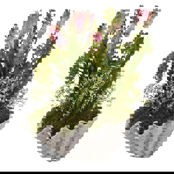 Made from ceramic and fully watertight, this bowl is designed for flexible styling across different rooms. Use it to display seasonal bulbs and florals, as an ice bucket for champagne, or as a bathroom accessory for neatly rolled towels. Finished in a white/grey palette, it works as a stand-alone statement piece while also pairing easily with a range of interior styles.