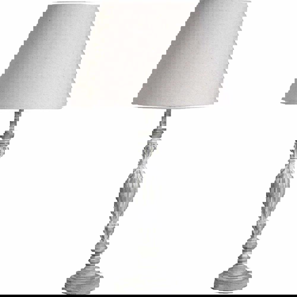 Designed by Hill Interiors, the Aegina Table Lamp is a considered lighting choice for sideboards, consoles and bedside tables, pairing a distressed base with a plain lampshade for a calm, understated finish. The light grey and beige palette sits easily in a range of interiors, while the compact footprint makes it well suited to smaller surfaces where you still want a defined pool of light.